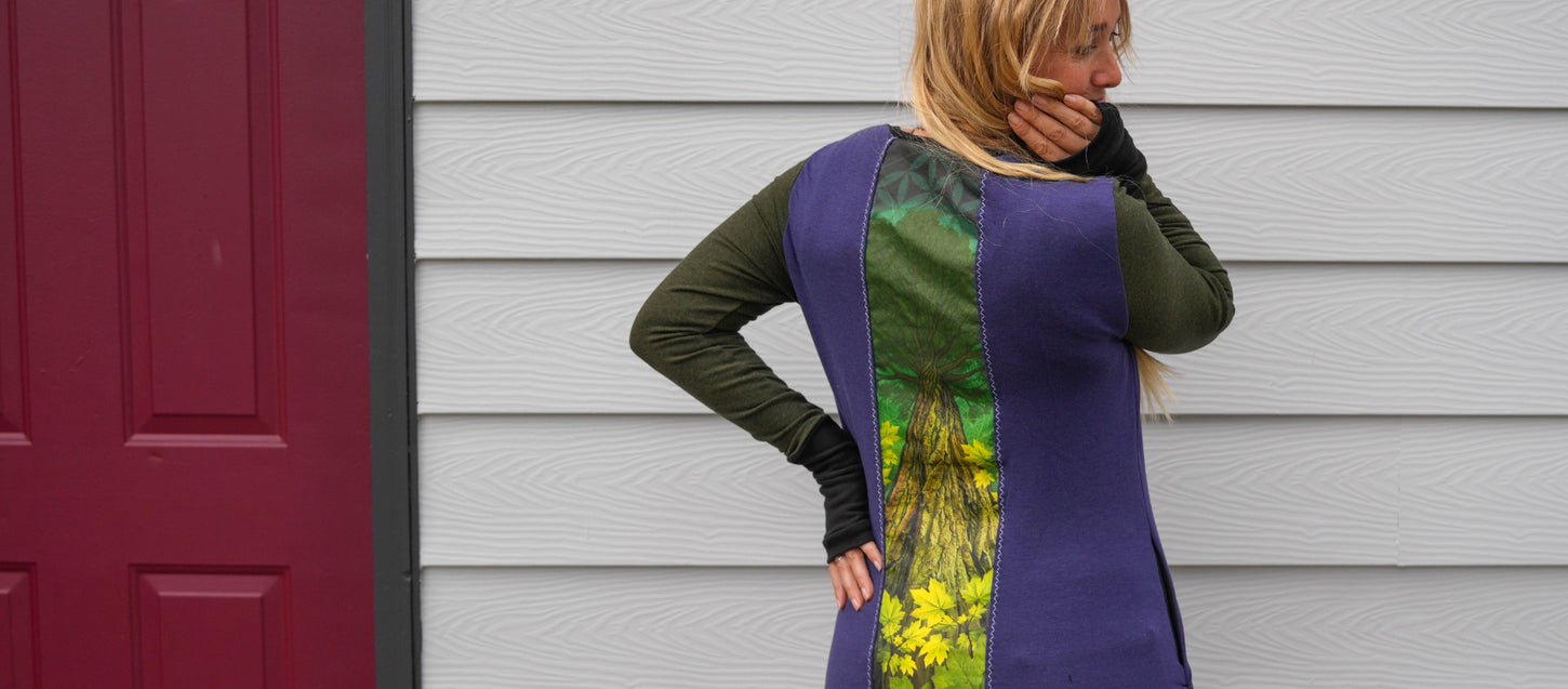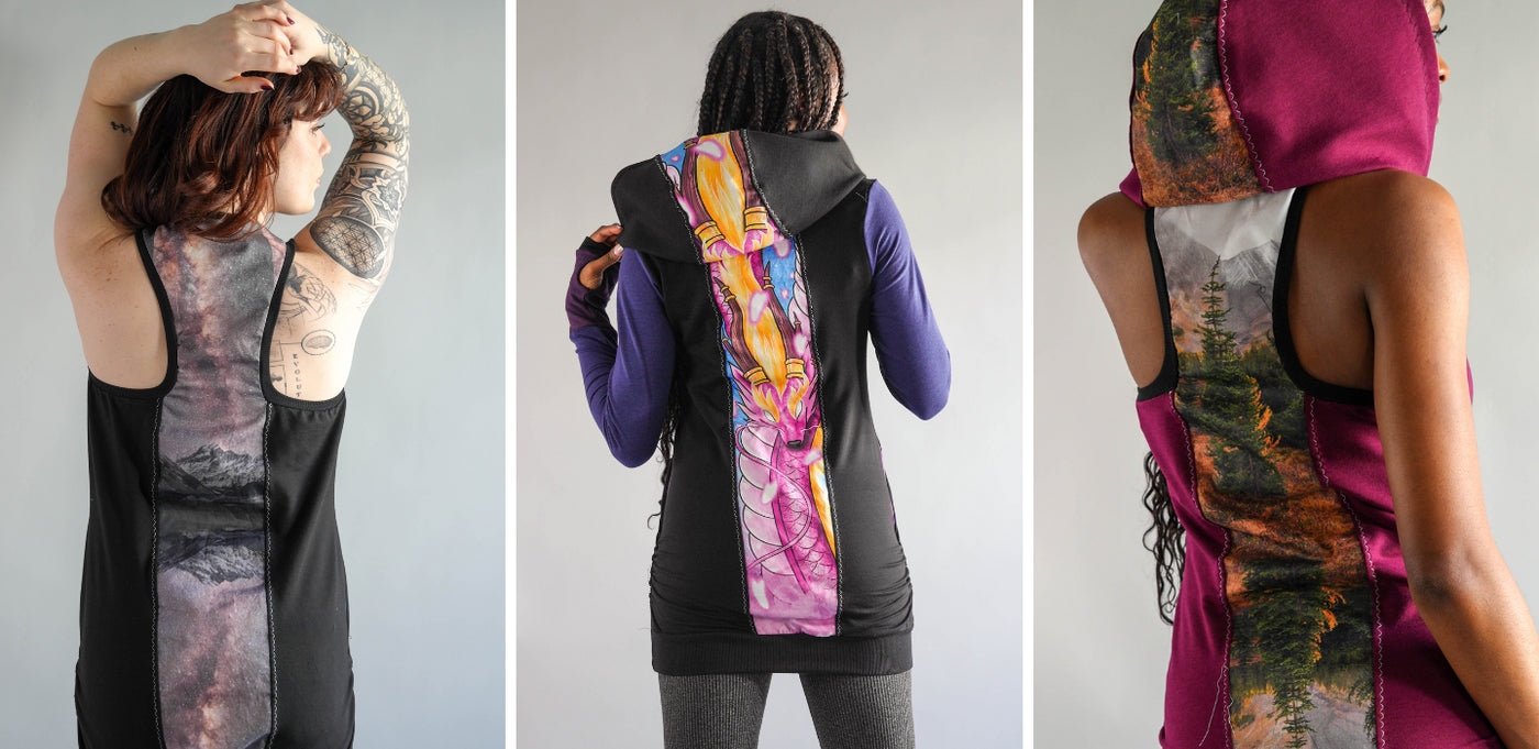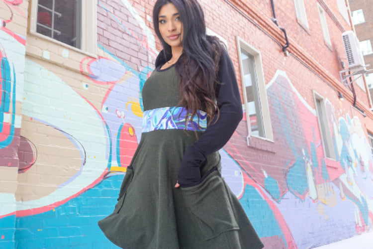 At Untamed, we add a unique twist to our flattering styles by collaborating with amazing local Canadian artists, printing their work onto fabric, and incorporating it into our creations.