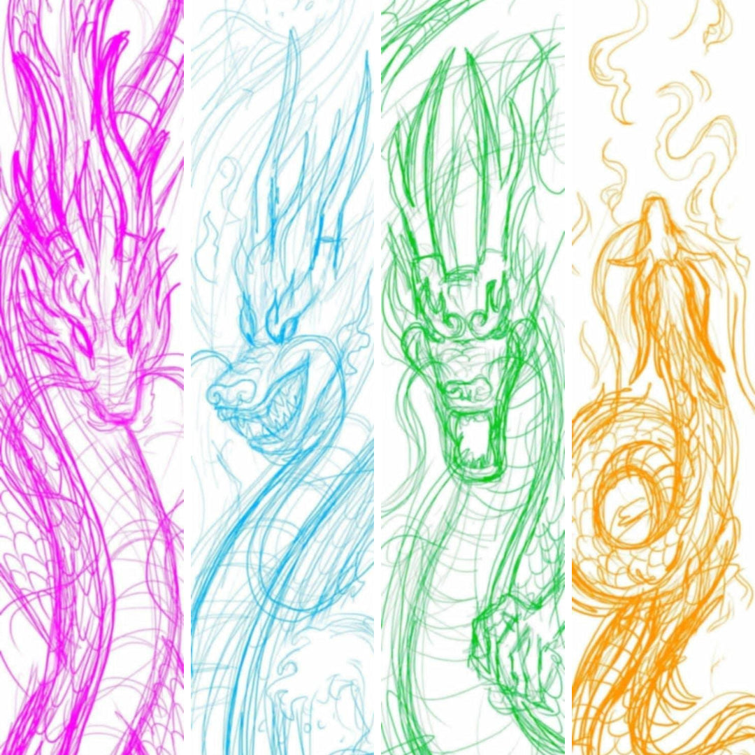 ''For the dragon collaboration, I decided to draw inspiration from the raw beauty of the elements, infusing each dragon with a distinct essence: fire's elegance and intensity, water's fierce fluidity, the delicate elegance of cherry blossoms sprouting from earth, and the untamed freedom of air''.
