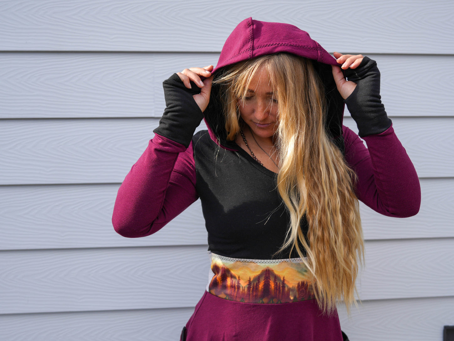 "My designs are made for the busy woman who wants to look and feel fabulous. Untamed focuses on creating everyday clothing that is practical and comfortable while also being fun, flattering, and unique. Each piece is enhanced with a special touch by collaborating with local artists, printing their artwork onto fabric, and incorporating their designs into my creations."